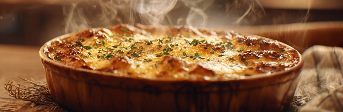 Nudeln in Tomatensauce mit Schinken und Champignons, mit Edamer Käse überbacken